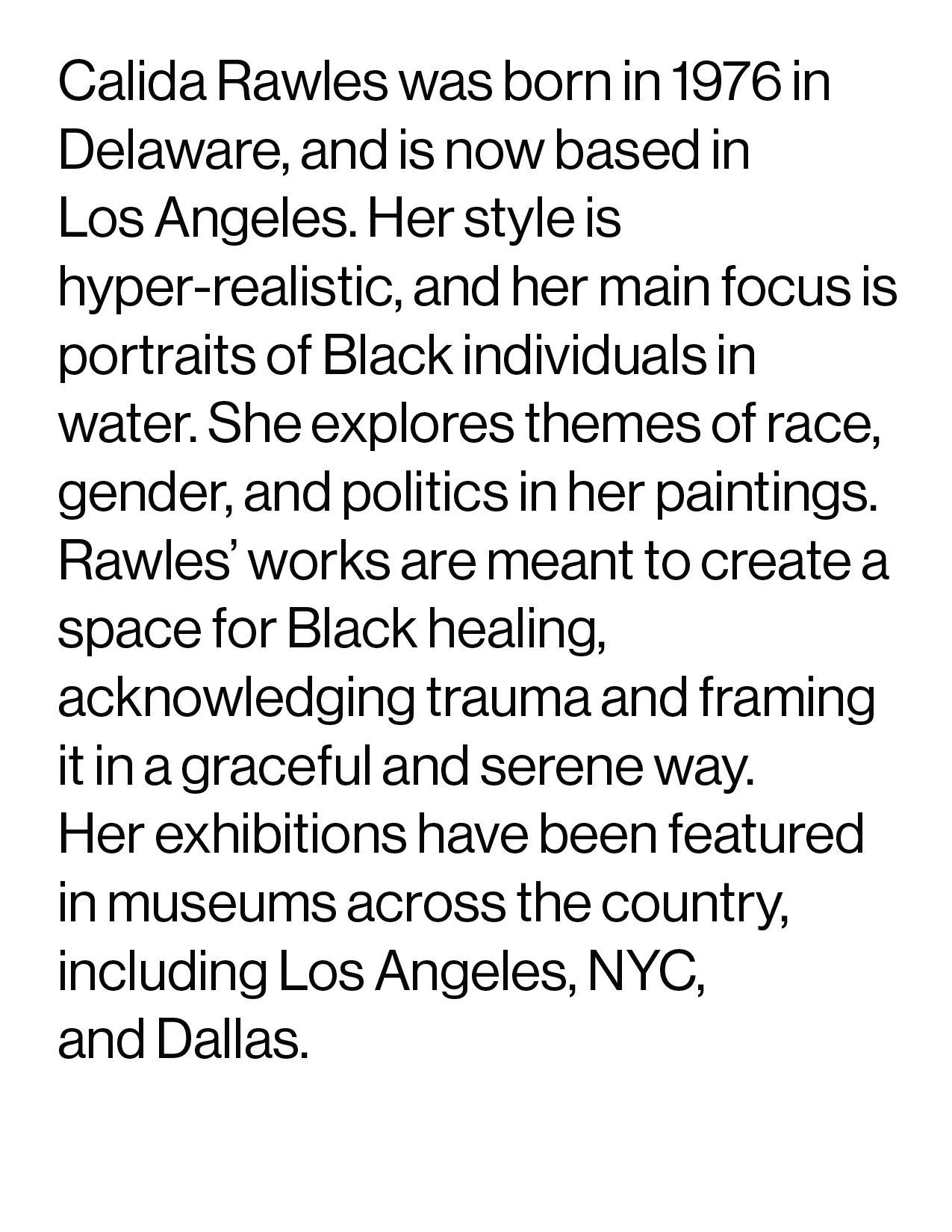 This zine was created to spotlight artist Calida Rawles and her work, aiming to introduce her unique voice and creative vision to a wider audience. The purpose was to craft an engaging, accessible mini-publication that highlights her art and story in a visually compelling way.